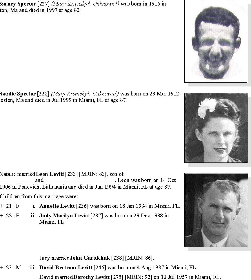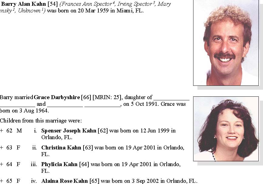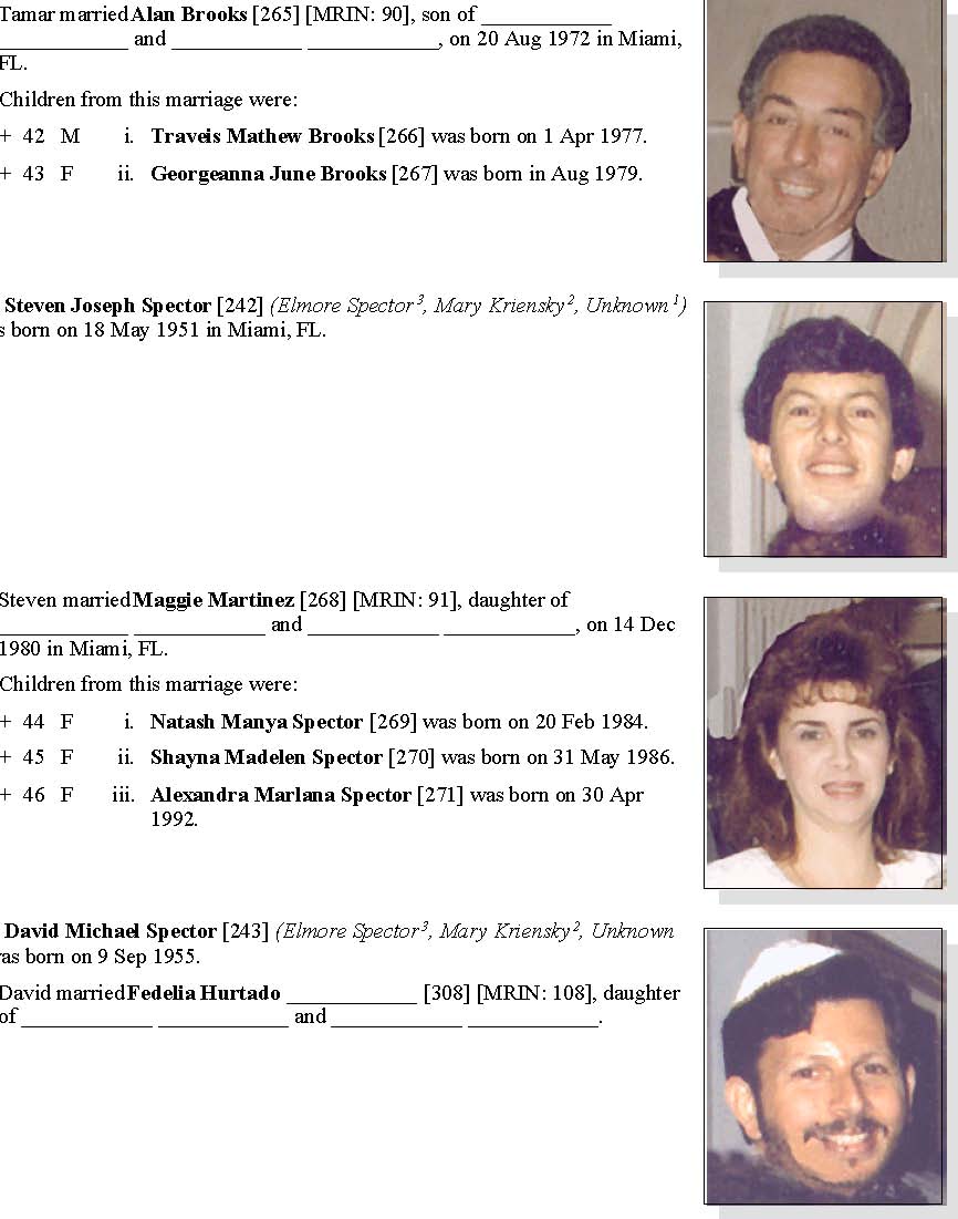 | + 17 | M | ii. | Steven Joseph Spector [242] was born on 18 May 1951 in Miami, FL. |