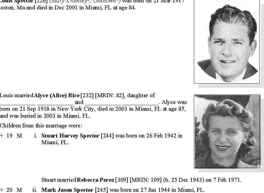 + 19 M i. Stuart Harvey Spector [244] was born on 26 Feb 1942 in Miami, FL.